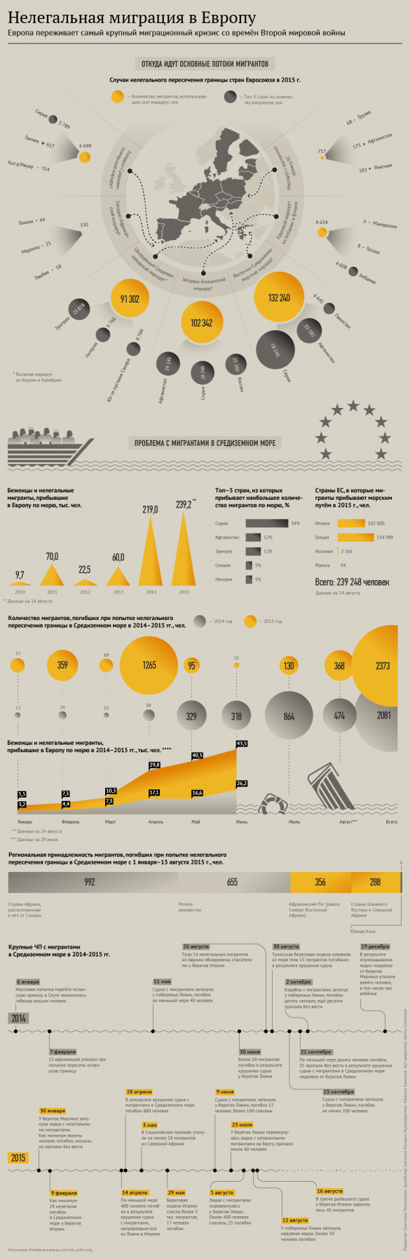 С начала 2015 года на территорию Евросоюза прибыли 340 тысяч мигрантов. По мнению экспертов, ситуация с нелегальными мигрантами в данный момент в странах ЕС является наихудшим кризисом с перемещенными лицами в этом столетии.