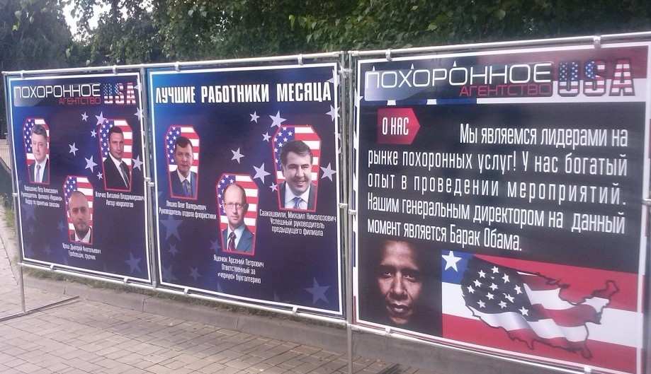 «„Похоронное бюро США” проходит в тех городах, которые сами забирают эту выставку и реализовывают ее на своих площадках, — сказал собеседник агентства. — Кроме Донецка она уже состоялась в Макеевке, Снежном, Харцызске, Енакиево и Шахтерске в рамках других крупных мероприятий».
