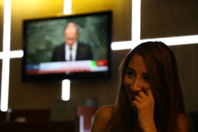 К выступлению президента РФ администратор выкрутил громкость на максимум. Засуетились журналисты с местных каналов, и только в стайке гламурных сирийских барышень продолжали ковырять наманикюреными коготками экраны смартфонов. Переводчик перехватил наши взгляды: