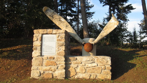 В оформлении памятника использованы сохранившиеся части винта разбившегося советского самолёта.