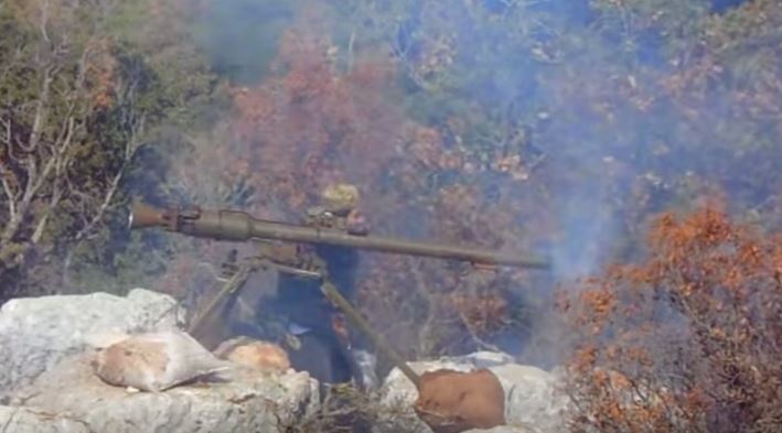 Подразделения «Первой прибрежной дивизии», вероятно, в районе Латакии, ведут огонь по дороге, ведущей в Джеб аль-Гар.