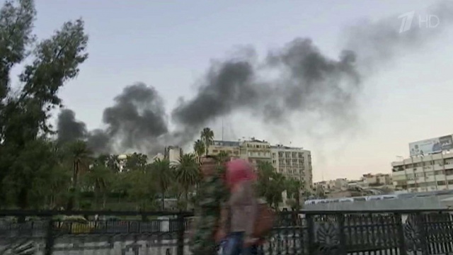 Обстрелян центр Дамаска, ракета попала в многоэтажный дом (ВИДЕО)