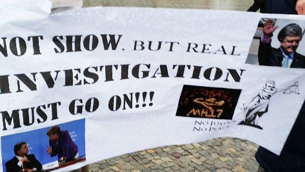 «Мы заявляем о том, что расследование, проведенное под контролем нидерландских специалистов, является неполным, непрозрачным и предвзятым», — заявили пикетчики. Митинг шел под проливным дождем, однако жители Берлина и туристы охотно подходили и разглядывали транспаранты, которые держали в руках активисты.