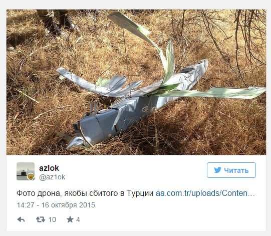 Опубликованы снимки с места падения сбитого беспилотника в Турции (ФОТО)