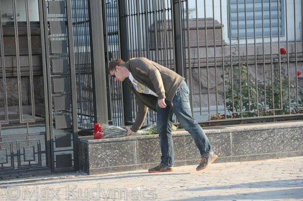 Киевляне приносят цветы к посольству РФ в связи с крушением самолета в Египте (ФОТО)