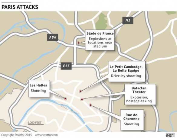 Семь отдельных нападений произошли вечером в пятницу в Париже. Сначала неизвестные открыли стрельбу в одном из ресторанов, затем появилась информация, что в театре «Батаклан» в заложниках удерживались около 100 человек. Кроме того, несколько взрывов произошло в непосредственной близости от стадиона «Стад де Франс».