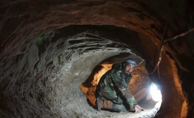Иногда попасть в захваченные боевиками районы можно было только по таким тоннелям. Война там практически велась под землей. Сирийские военные в конце концов были вынуждены блокировать эти ходы.