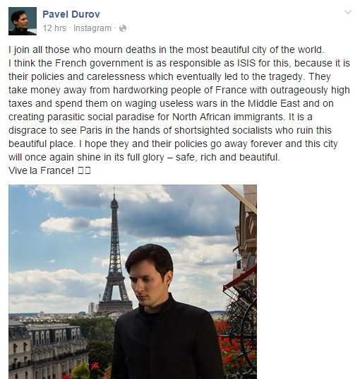Павел Дуров: Власти Франции виновны в терактах не меньше, чем ИГИЛ (ФОТО)