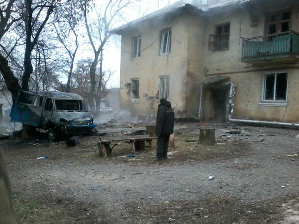 Съемка начинается в районе 21-й шахты, где камера фиксирует разбитые окна и иссеченные осколками мин и снарядов стены. На улицах встречаются редкие прохожие. Чем дальше на запад и ближе к линии фронта, тем сильнее разрушения и меньше признаков жизни.