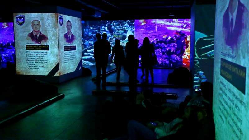 Посетителям показали специально обработанные для интерактивной выставки фотографии, которые оживали на огромных экранах 7×3 метра. Основными героями инсталляции — сотрудники спецподразделения «Беркут», которые, при преступном бездействии действующей на тот момент власти на Украине, одни противостояли толпам обезумевших неофашистов и радикалов.