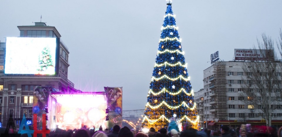 Открытие главной новогодней елки Донецкой Народной Республики собрало на центральной площади столицы более 10 тысяч жителей, в том числе множество детей. Церемонию зажжения огней совместили с запуском исторических часов на здании Главпочтамта столицы.