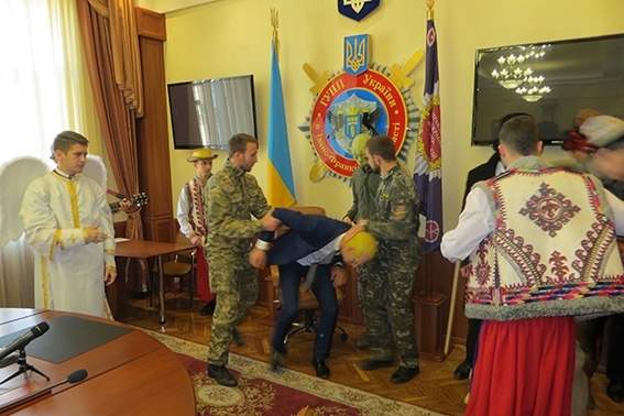 И, само собой, не забыт Путин: он предстал в облике царя Ирода. И тут украинцам есть, где разгуляться — в конце представления Путина выгоняют из Украины.