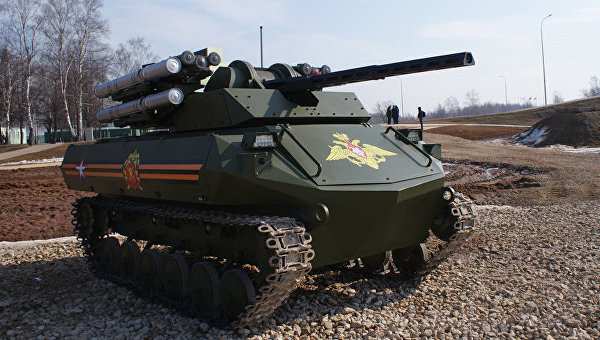 Речь идет, прежде всего, о робототехническом комплексе «Уран-9», который предназначен для дистанционной разведки и огневой поддержки общевойсковых, разведывательных и антитеррористических подразделений.