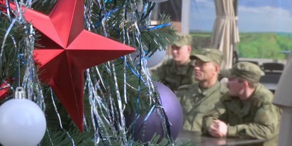 На базе слушали новогоднее поздравление президента РФ Владимира Путина и министра обороны РФ Сергия Шойгу. Двенадцатый удар курантов сопровождался троекратным «ура».