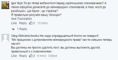 Комментарии «непреклонных» украинцев под сообщением в Facebook демонстрируют всю глубину нанесённой им обиды.