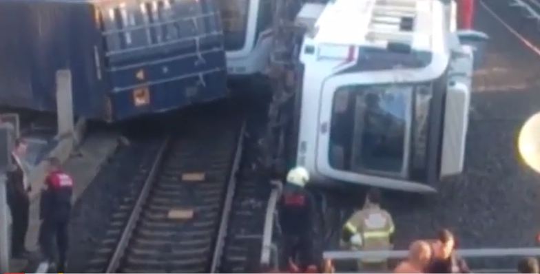 ЧП в Турции: поезд метро столкнулся с контейнером и перевернулся (ВИДЕО)