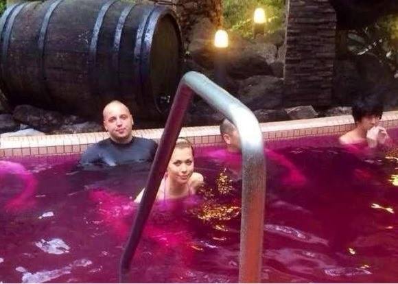 «Я видел такой аттракцион в Гурзуфе. Бассейн каждый раз наполняли под заказ разбавленным марочным вином. Вина нужно было много, стоило это дорого — далеко не одну среднюю месячную зарплату нынешних украинцев. Поэтому обычно бассейн сухим стоял», — рассказывпет публицист.