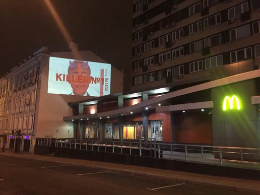 Позже видеозапись прокрутили на здании рядом с посольством Великобритании на Смоленской набережной.