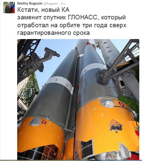 Как напомнил Рогозин в своем микроблоге в Twitter, Роскосмос пополнил группировку ГЛОНАСС в составе 24 работающих и 4 находящихся в орбитальном резерве космических аппаратов.