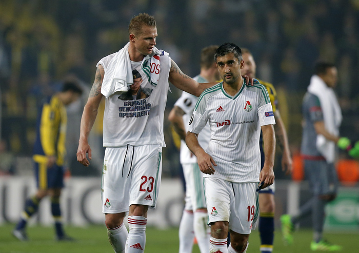 Напомним, по окончании первого матча 1/16 финала Лиги Европы в Стамбуле, в котором «Локомотив» уступил со счетом 0–2, полузащитник московской команды снял игровую футболку и остался в майке с портретом Владимира Путина и подписью: «Самый вежливый президент».
