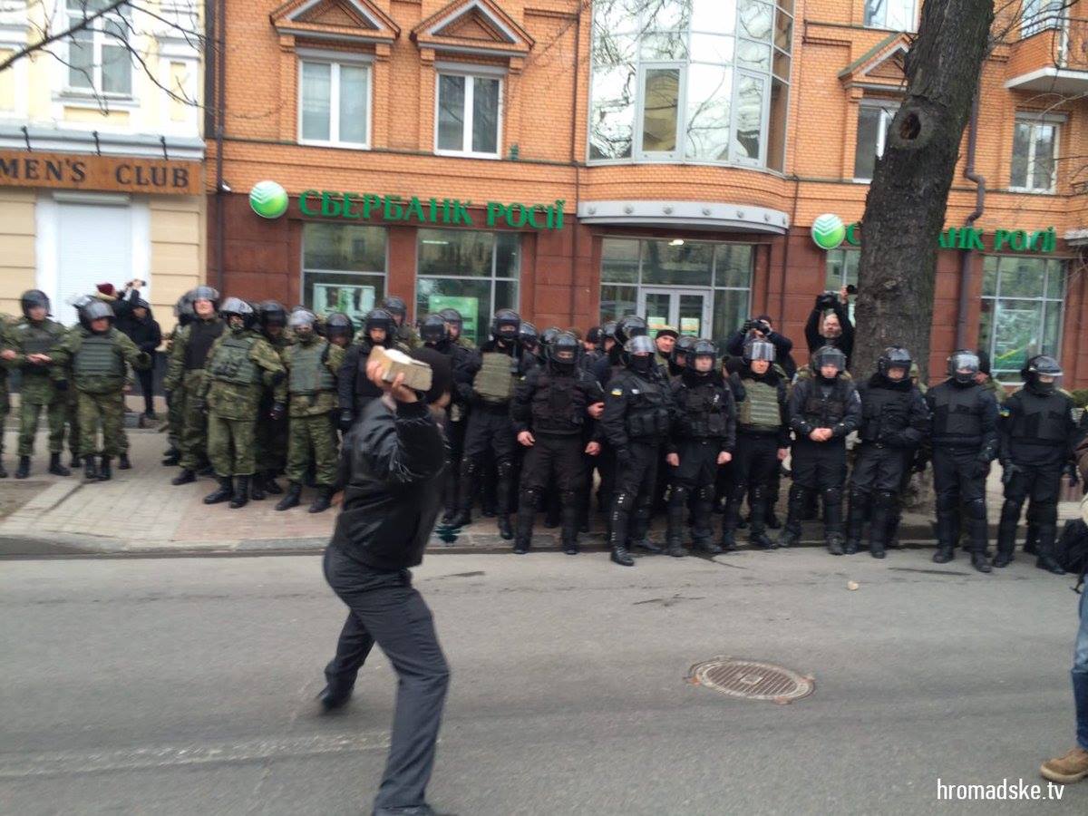 Активісти кидають каміння в "Сбербанк России" pic.twitter.com/4AYPtfUUf5