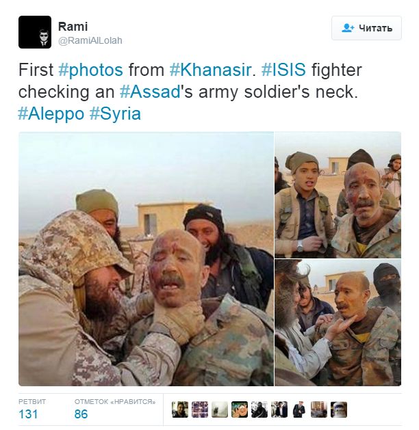 Со вчерашнего дня социальные медиа сирийских боевиков и сочувствующих им украинских, грузинских и иных пользователей трубят на весь мир об огромном количестве пленных бойцов Сирийской Армии в районе трассы Алеппо — Хама, которых якобы захватили игиловцы.