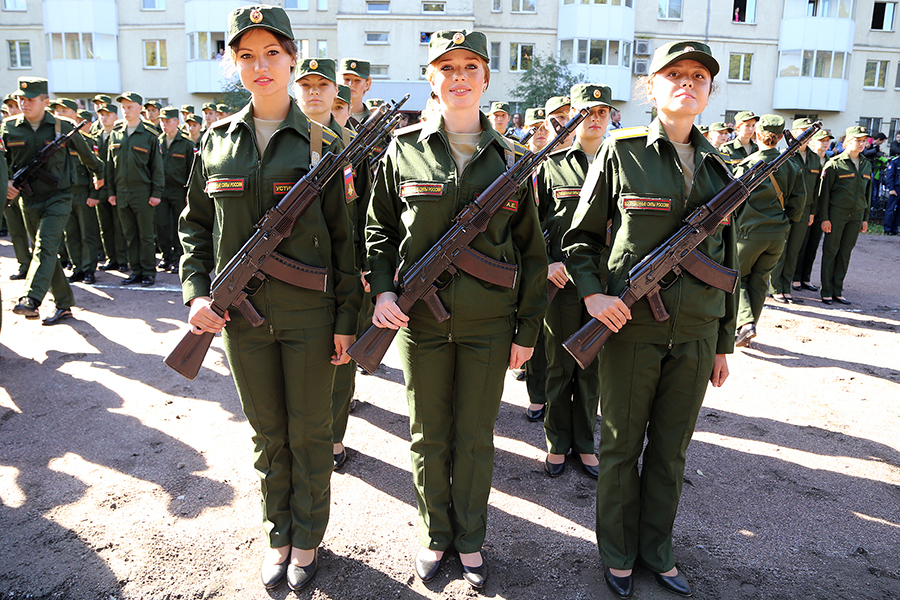 На фотографиях Минобороны РФ женщины-военнослужащие предстали во всей красе — в парадной форме и в камуфляже, во время несения службы, принятия Воинской Присяги и праздничных мероприятий.