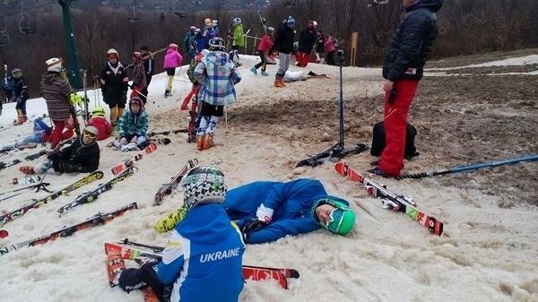«Стою на асфальте я, в лыжи обутый... »: ведущих украинских горнолыжников из-за отсутствия снега заставили кататься на земле (ФОТО)