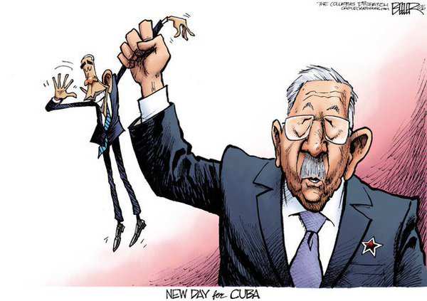 Напомним, совместная пресс-конференция кубинского и американского лидеров закончилась очень неловко: когда пришло время протокольного прощания, что-то пошло не так и Рауль Кастро не дал Бараку Обаме обнять себя, держа на расстоянии вытянутых рук, а затем и вовсе, схватив американского президента за левое предплечье, поднял его руку над головой как трофей.