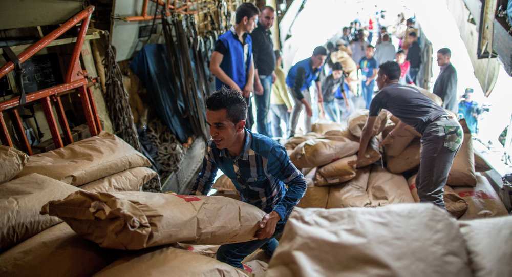 Более 10 тонн российской гуманитарной помощи доставлено в населенные пункты сирийской провинции Хама, ранее осажденные и захваченные террористами «Джебхат ан-Нусры»*, передает корреспондент РИА Новости с места событий.