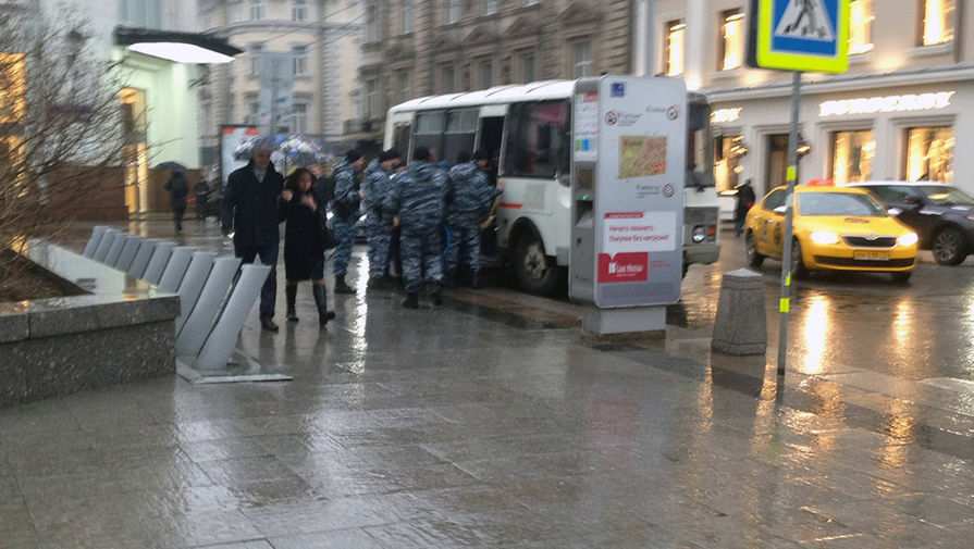 В центре Москвы задержали пятерых активистов движения «СтопХам», пытавшихся наклеить стикер на служебный автобус ОМОН.