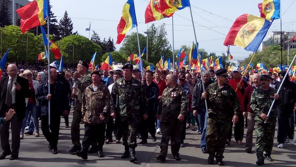 Сообщается, что во главе колонны, движущейся к Дому Правительства, ветераны молдавского «АТО» в Приднестровье.