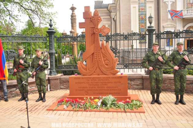 Трехметровый каменный крест — Хачкар — вчера освятили и установили в центре Донецка в память о 101-й годовщине геноцида армянского народа в Османской империи и невинных жертвах боевых действий в Донбассе.