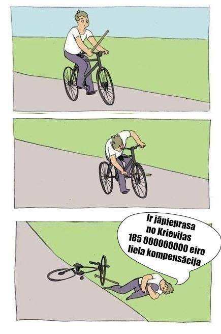 «Депутат от „Единства“ Вилнис Кирсис написал сегодня на меня заявление в Полицию безопасности. Он требует, чтобы за карикатуру о том, что Латвия с России могла бы потребовать 185 000 000 000 евро компенсации, был возбужден процесс по статье 74.1. Наказание — срок до 5 лет.
