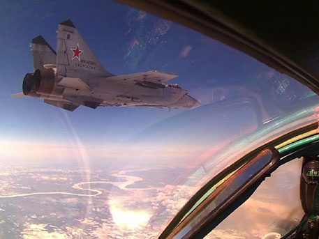 Российский истребитель МиГ-31 выполнил перехват американского самолета у берегов Камчатки профессионально и безопасно.