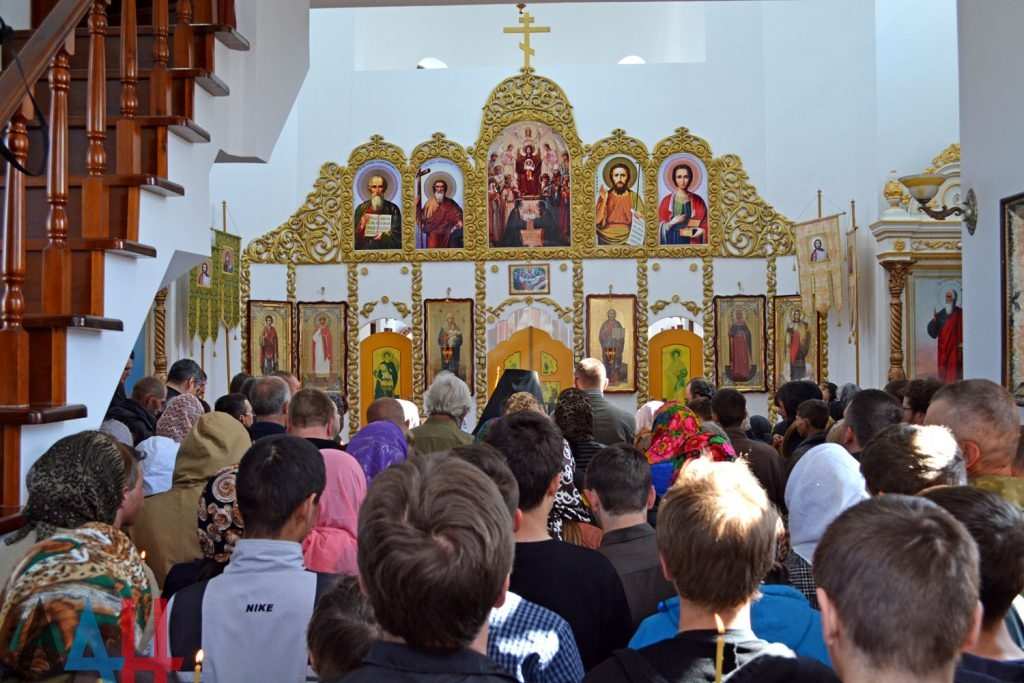 В маленьком храме собралось более ста человек, он не смог вместить всех желающих.