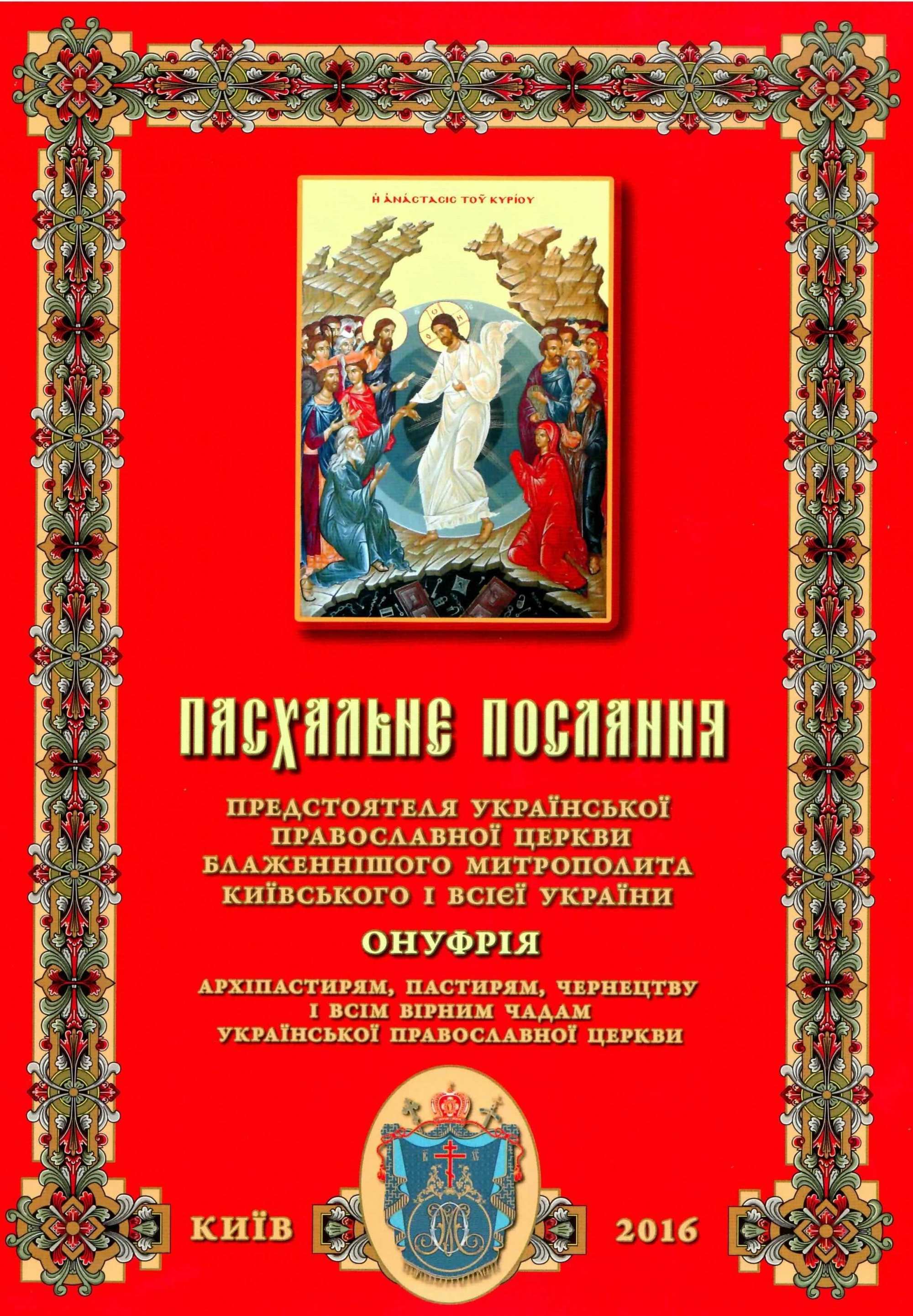 Пасхальное послание Предстоятеля Украинской Православной Церкви Митрополита Киевского и всея Украины Онуфрия (русск., украинск.)