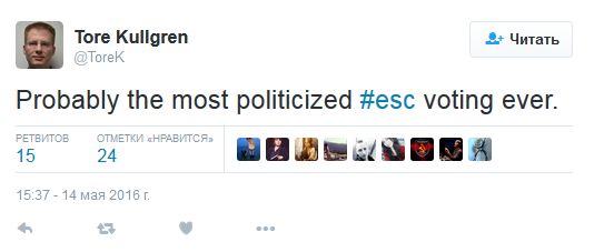 «Возможно, это самое политизированное «Евровидение» за всю историю», — считает Тор Куллгрен (Tore Kullgren) из Швеции.