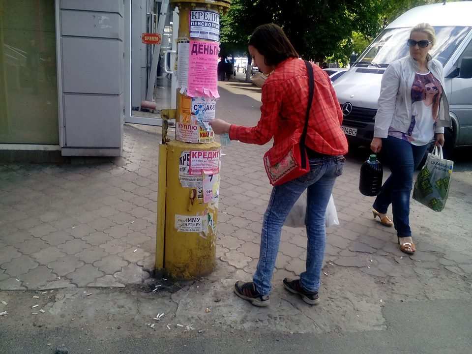 В Днепропетровске местная «активистка», активная сторонница майдана и волонтер центра помощи переселенцам Людмила Хапатько сорвала со столбов 5 кг объявлений, в которых жителей города приглашали отдохнуть в Крыму.