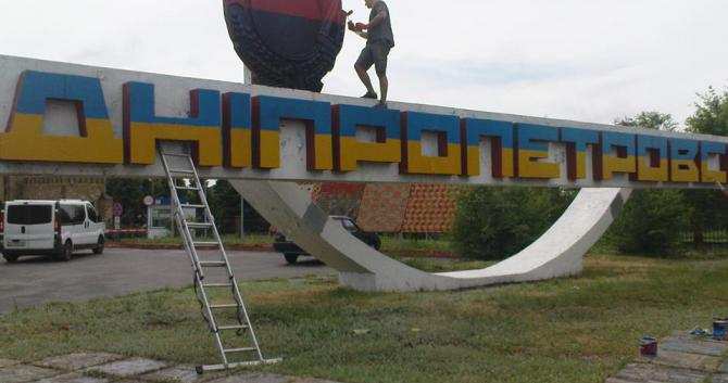 При въезде в город Днепропетровск со стороны Запорожья начался демонтаж букв, которые стали лишними в названии города после его переименования, сообщают местные СМИ.
