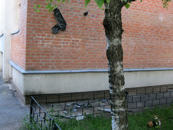 В 7:48 поступило еще одно сообщение о разбитой памятной доске участнику «АТО», установленной на здании общеобразовательной школы на ул. Шведской, дом 3.
