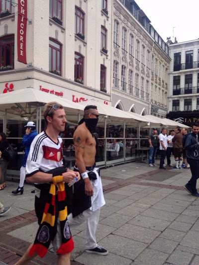 События развивались следующим образом: на площади Шарля де Голля в Лилле, где отдыхали как украинские ультрас, так и немецкие болельщики, поначалу все было спокойно.