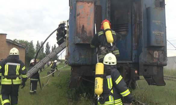 В Хмельницком на территории депо загорелся неработающий пассажирский вагон.