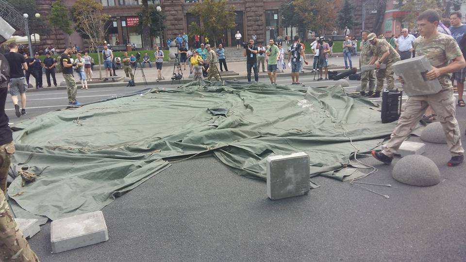 «Под Печерский суд привезли палатки. Бойцы добробатов планируют ставить их на Крещатике», — написал Мосийчук.