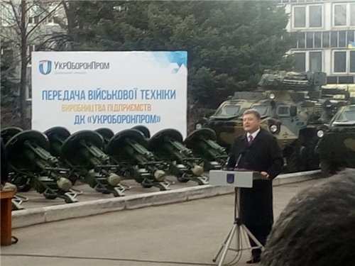 «Я думаю многие ещё помнят, как президент П. Порошенко в присутствии посла США Д. Пайетта передал армии партию нового вооружения, которая включала и новые 120-мм миномёты „Молот”, котороые выпускаются заводом „Маяк”.