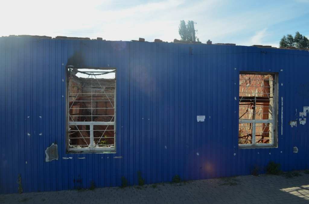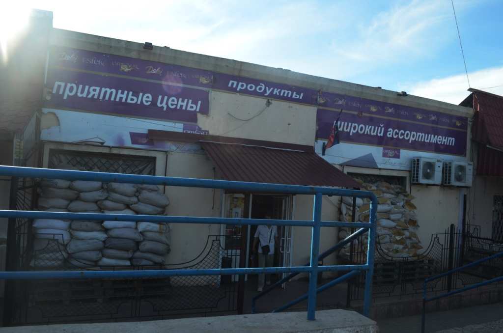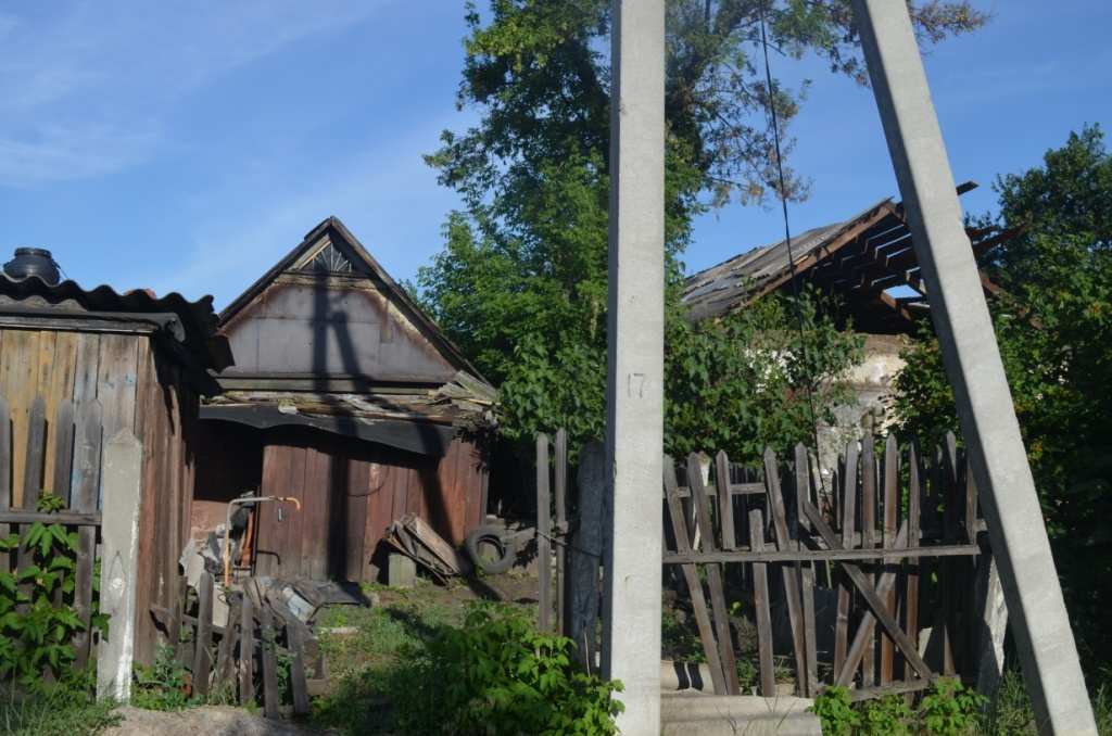 Трудовские находятся в Петровском районе Донецка, в черте города. Но граница пролегает очень резко. Вот здесь еще работают магазины, ходят маршрутки, улицы полны людей — а вот начинается дорога, ведущая к линии фронта. По обе стороны от этой дороги есть дома. В некоторых из них даже живут люди. Но дело уже к вечеру, на часах начало пятого, поэтому на улице их практически нет.