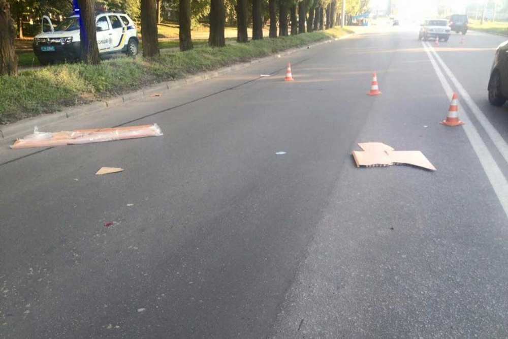 Очередное курьезное ДТП с патрульным авто случилось вчера в Харькове. В время движения на служебный автомобиль упали межкомнатные двери.