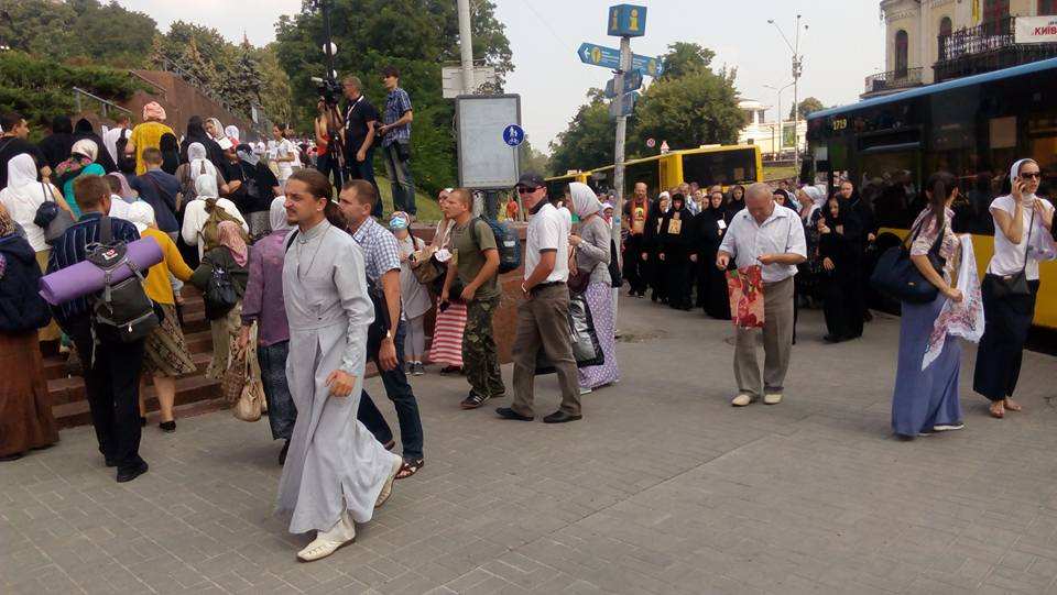 По словам очевидцев, находящихся на Европейской площади Киева, около тысячи верующих уже покинули площадь и выдвинулись в сторону Владимирской горки.