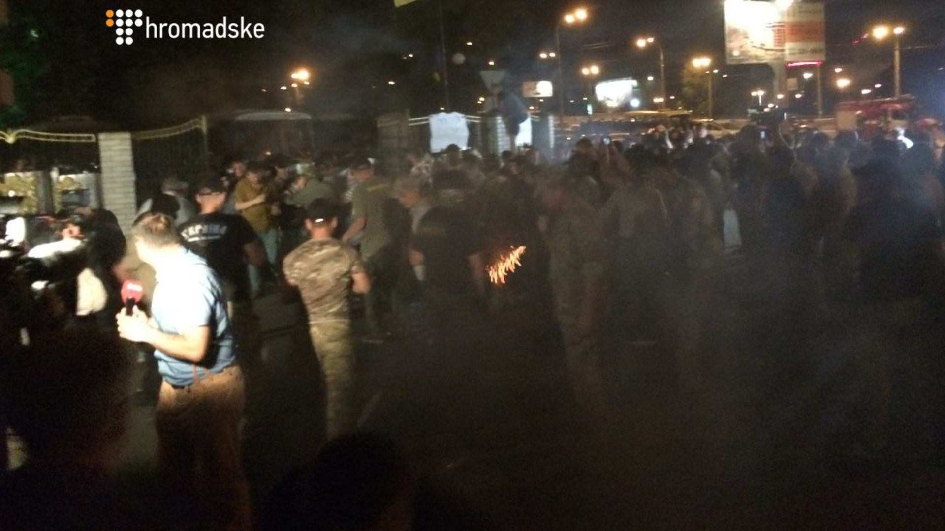 «Митингующие пытались пройти внутрь, началась драка с использованием слезоточивого газа, в ход пошли файеры и дымовые шашки. Также митингующие начали бросать шины в сторону нацгвардейцев. Бойцы Нацгвардии сейчас полностью окружили Оболонский райсуд для того, чтобы никто не мог туда пройти», — сообщают украинские СМИ.