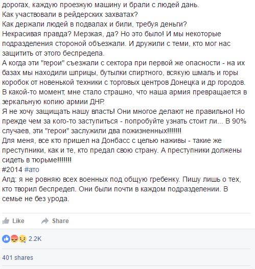 «Как человеку, живущему в „АТО“ с самого начала войны, мне есть, что сказать.